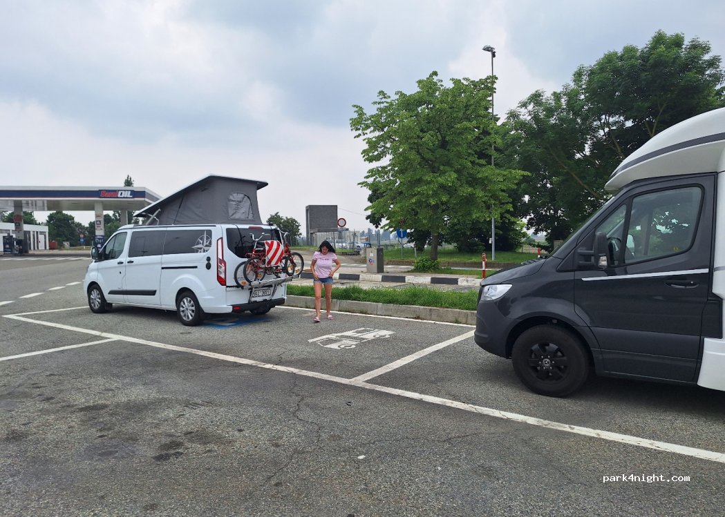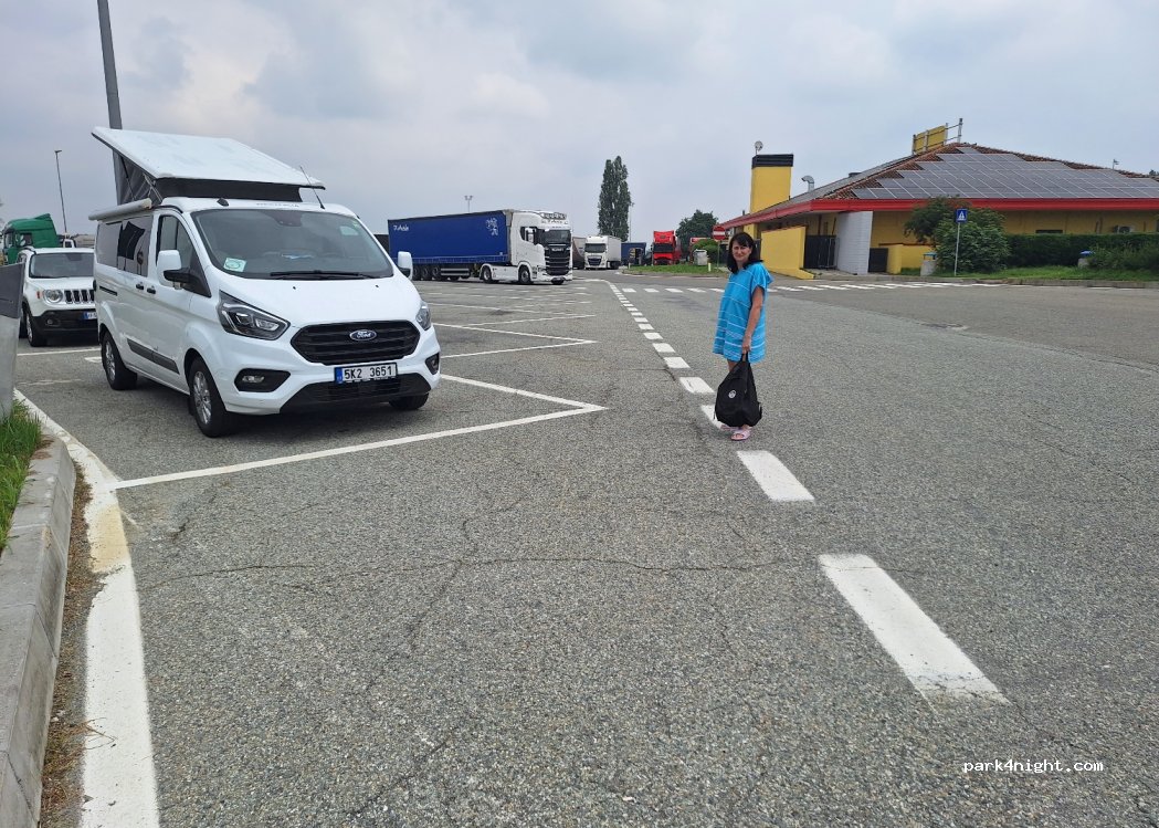 Parken soweit ok. Sind zum Duschen hergekommen und eine wahrscheinlich überarbeitete Servicekraft meinte recht harsch das diese außer Betrieb sei. Vielleicht hatten wir einfach einen schlechten Tag erwischt. Bei der nächsten Raststätte einige Kilometer weiter waren sie sehr freundlich und es hat alles wunderbar funktioniert.