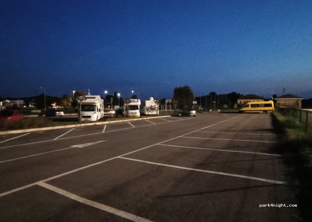 Ottimi parcheggi per camper ben segnalati, ampi in larghezza e lunghezza, in piano su asfalto. A due passi dal centro commerciale, dal mercatino dell'usato, dalla stazione dei treni e da un negozio di articoli per la pulizia. Parco giochi attrezzato con cestini, panchine e campo da gioco. Le fontanelle sono tutte chiuse ma il parcheggio vale la pena. Tranquillo di notte, poco illuminato ma sicuro