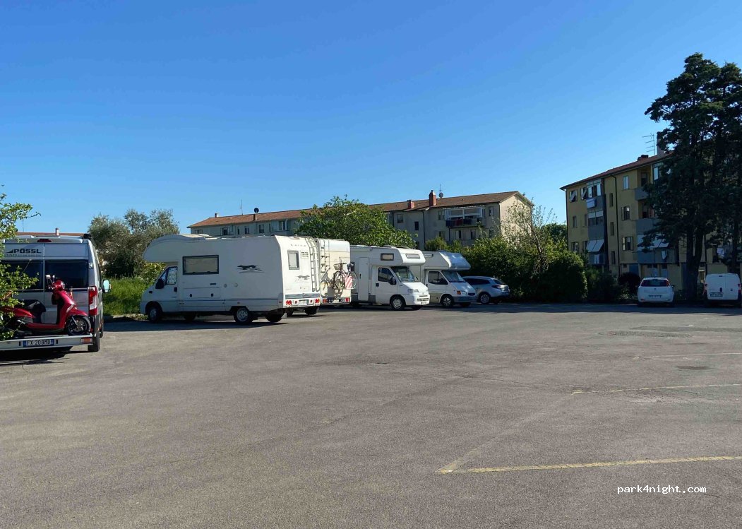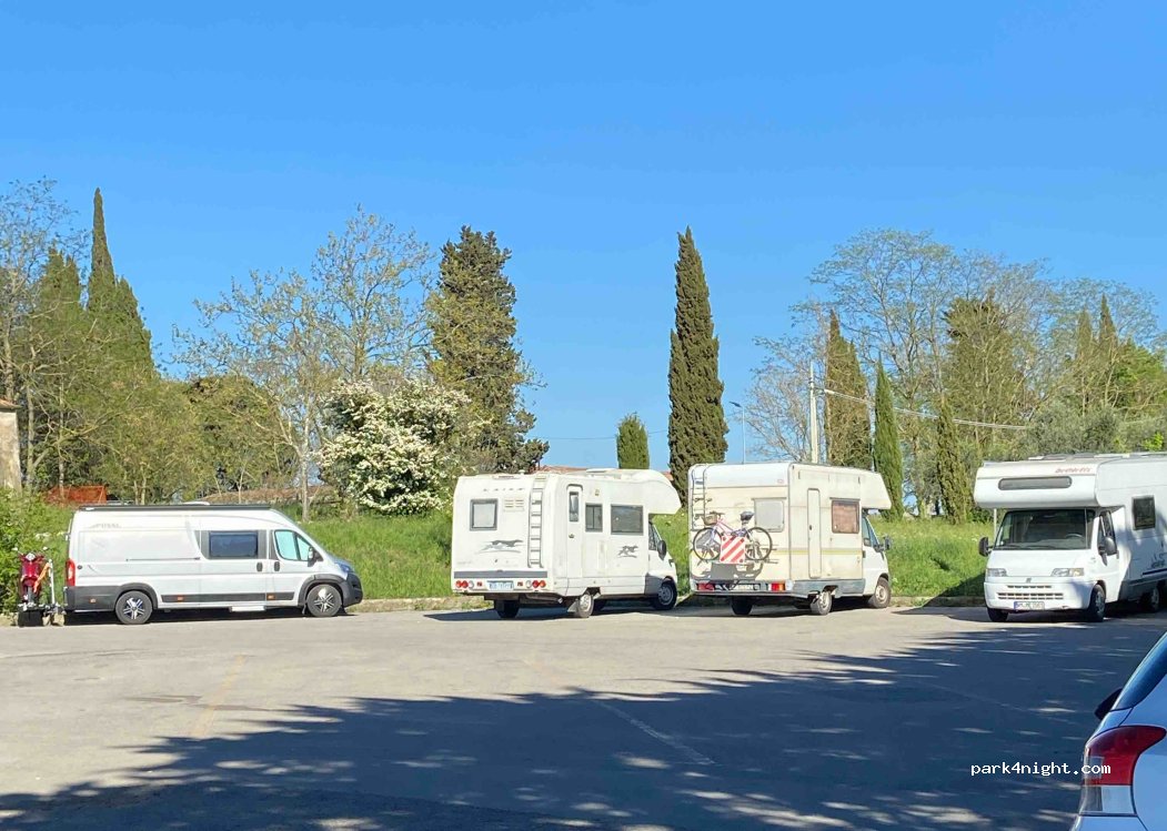 Parcheggio in zona molto tranquilla, vicino ad una piscina e al cimitero,che comunque non si vede....abbastanza in piano sul lato del muretto...lontana dal centro storico ma va benissimo per una notte..