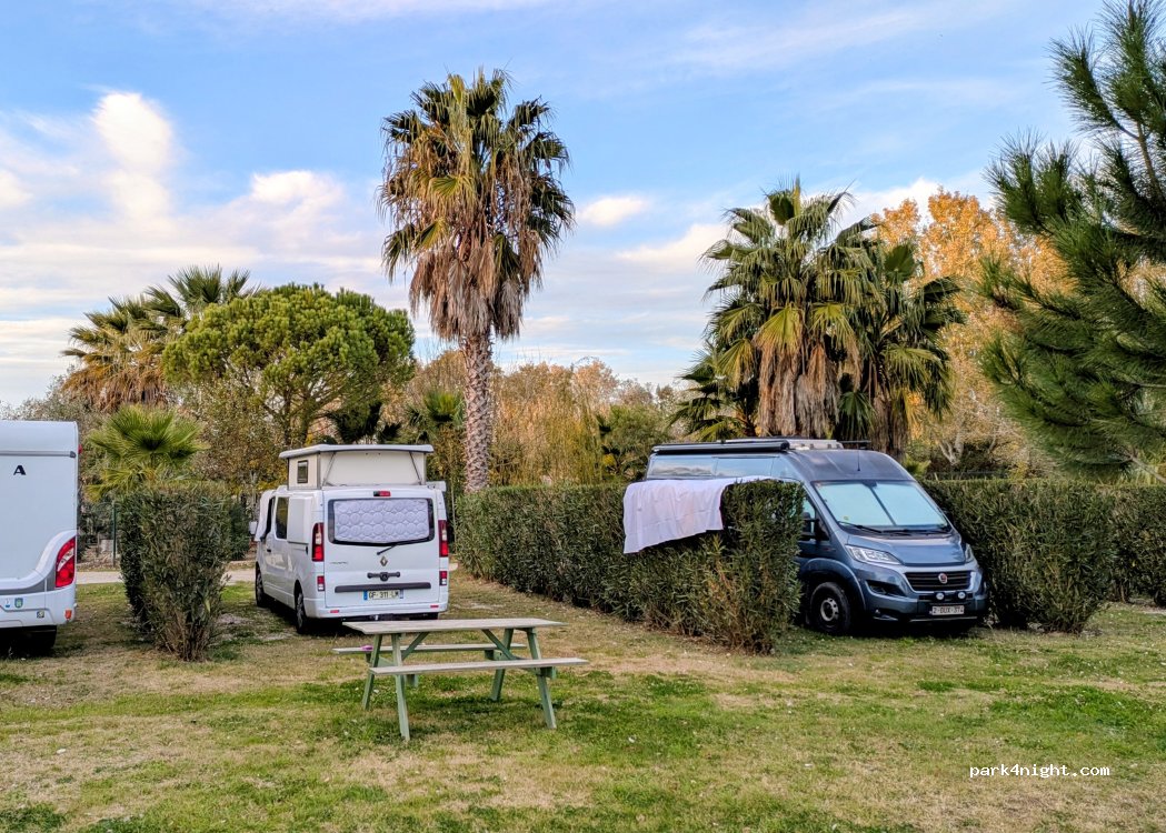 Super spot d étape en Camargue pour qui aime prendre son vélo et sillonner les chemins : Aiguës Morte d un côté et Grau du roi puis littoral de l autre. Très propre avec équipe accueillante !