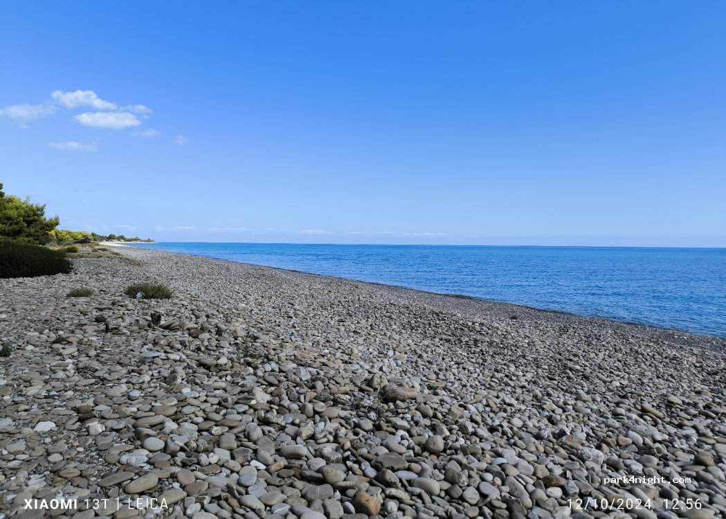 Sehr schöner Ort, der auch gut erreichbar ist. Steinstrand aber schönes Wasser. Der Pinienwald bietet Schutz. Man hat hier mehrere Möglichkeiten zum Stehen. Leider mussten wir nach der 1. Nacht den Ort verlassen, da ständig Einheimische Männer kamen und gegafft haben, stundenlang. Keine Ahnung was mit denen los war. Wir fühlten und total unwohl. Was ist los mit den Menschen?