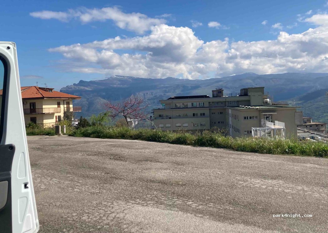Ampio parcheggio isolato nelle immediate vicinanze del cimitero. Non sono presenti aree di scarico o carico. Ci è stato sconsigliato pernottare.