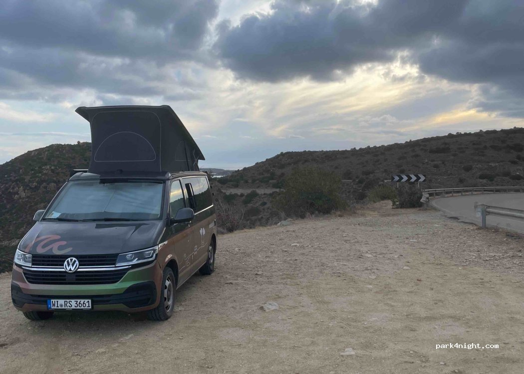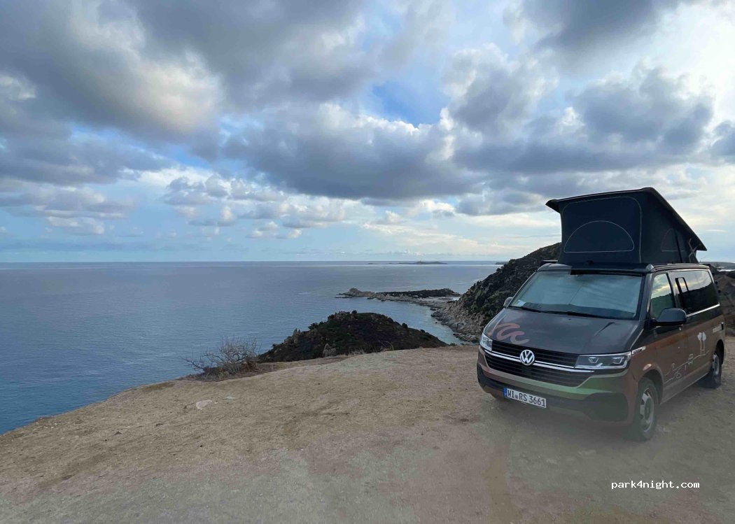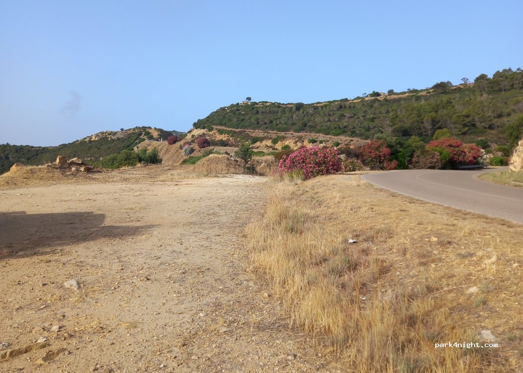 Roadside parking with a spectacular view of Molentis beach… but we only stopped for one night in the absence of another convenience