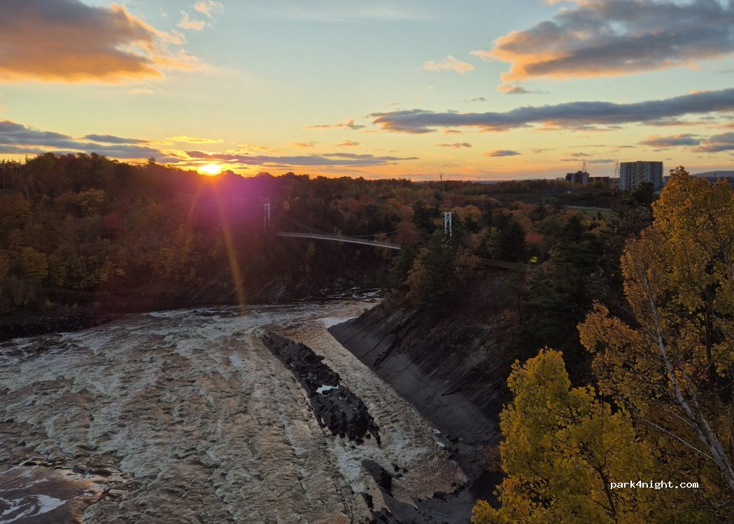 Super parc pour voir les chutes de la chaudière et se promener ! Pleins d'écureuils. Interdit la nuit ! Cela peut-être compliqué de se garer avec un gros VR (22 pieds) car il y a du monde. Toilettes dispo. Le casse croûte était fermé. Couché du soleil très joli. Possibilité de voir des arc en ciel le matin côté ouest et l'après midi côté est saint Nicolas.