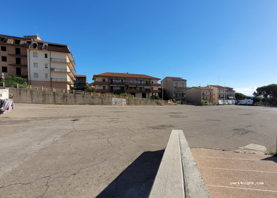 Parkplatz ist mitten im Ort und riesig. Ist aber deutlich abschüssig. Nebendran ist eine Straße, die aber in der Nacht nicht mehr so häufig befahren wird. Für eine Nacht okay.