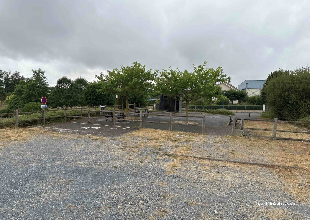 Très grande place avec 6 aires délimitées par de belles haies mais si complet possibilité de stationner sur la place. Eau, vidage cassette, emplacement, gratuits. Proche centre village avec une supérette Carrefour Contact près de l'église. Calme et tranquille.