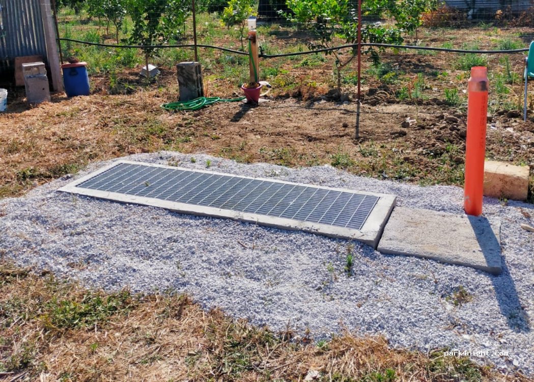 Der private Parkplatz kann nur nach vorheriger Reservierung betreten werden. Videoüberwachter Bereich. Es gibt keinen Schatten. Kein WLAN, keine Toilette, kein Schwimmbad. Die bereits geprüften Maße für die Zufahrt zum Parkplatz sind: Breite 2,50m, Länge 6,50m, Höhe unbegrenzt. Im Tagespreis enthaltene Leistungen: Licht max. 700 W, kostenloses Trinkwasser in Flaschen, Be- und Entladen mit Wasser, Dusche mit Wasser aus der Zisterne, Nutzung der Küchenzeile und des externen Kühl- und Gefrierschranks.