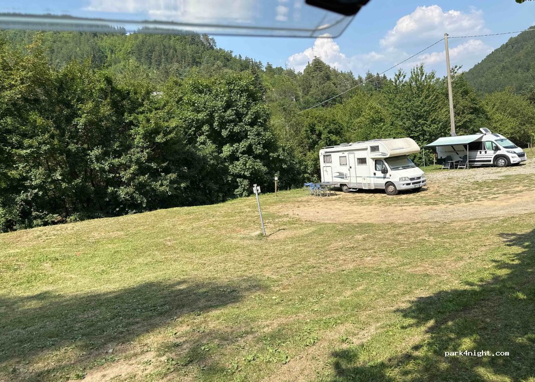 Al centro del paese e ottima posizione per cascata e grotta. Bagni e docce nuove incluse. Assenza di ombra parcheggio su ghiaia. Ok scarico e carico. Costo nella media con possibilità di corrente extra