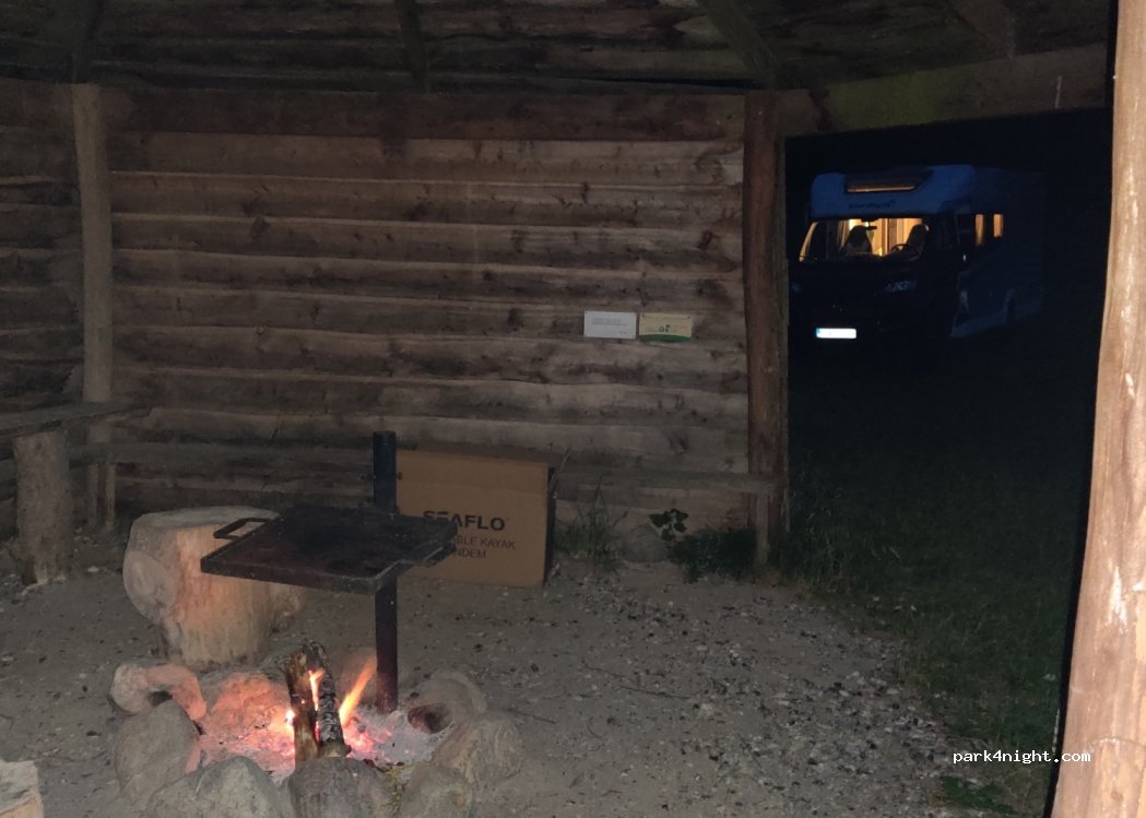Een heerlijke rustige plek met grillhut. Lekker vuurtje stoken onder afdak. De plaats is echter absoluut niet te bereiken met grote campers. Het pad is heel smal en overwoekerd. Zoals beschreven, neem het pad links naast de boerderij en je komt op deze prachtige plek.