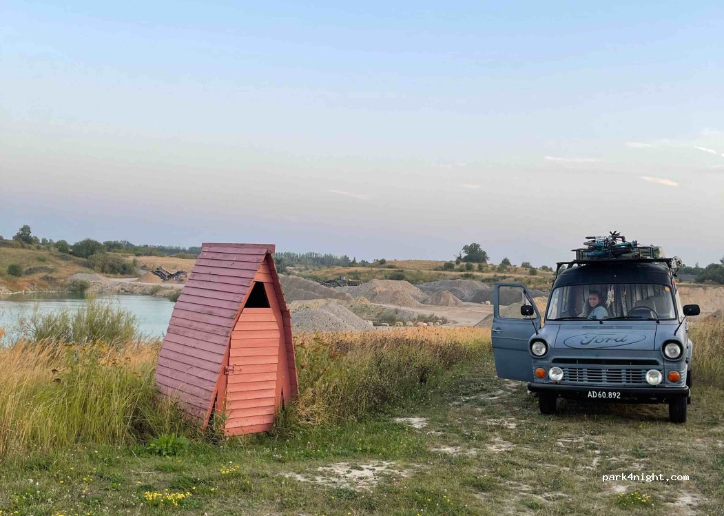 cabane à barbecue, bonne accessibilité grand camping-car de 7m. avec toilette bio et cheminée couverte avec grill. super belle vue sur un lac sur un terrain sablonneux. plusieurs tables de pique-nique. Chemin d'accès à côté de l'entrée de la maison à droite du grand portail. L'emplacement lui-même est à la cabane si vous suivez la route de gauche. La route est étroite mais praticable avec du gravier.