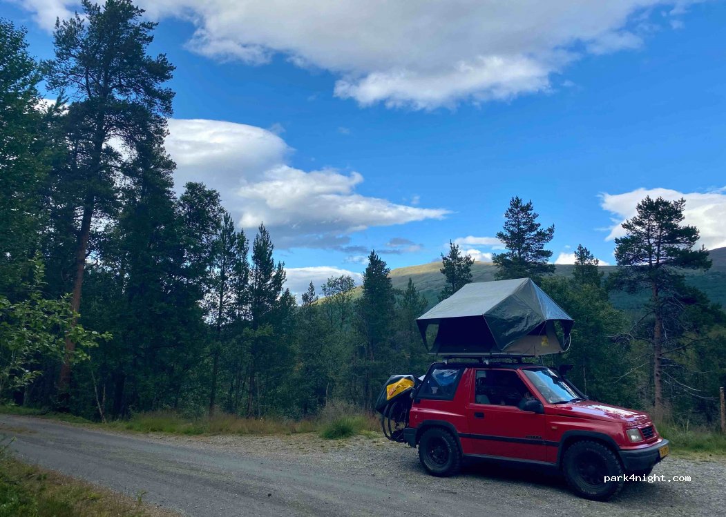 Nous sommes allés dans le chemin, et à 50 mètres il y avait un espace dans la forêt pour une voiture (tente de toit), super !