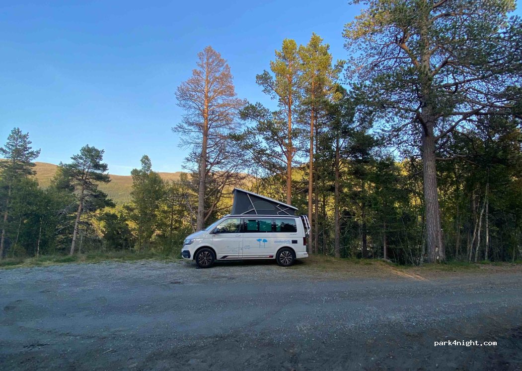 Lugar en plena naturaleza justo al lado de un río de aguas bravas, no nos molestó. Desde el puente se entra en una reserva natural. Se pueden realizar bonitas caminatas alrededor de los estanques. Pistas de esquí de fondo señalizadas. El sitio está en el Parque Nacional Jotunheimen. El lugar está a unos diez minutos del punto de partida de la caminata Besseggen.