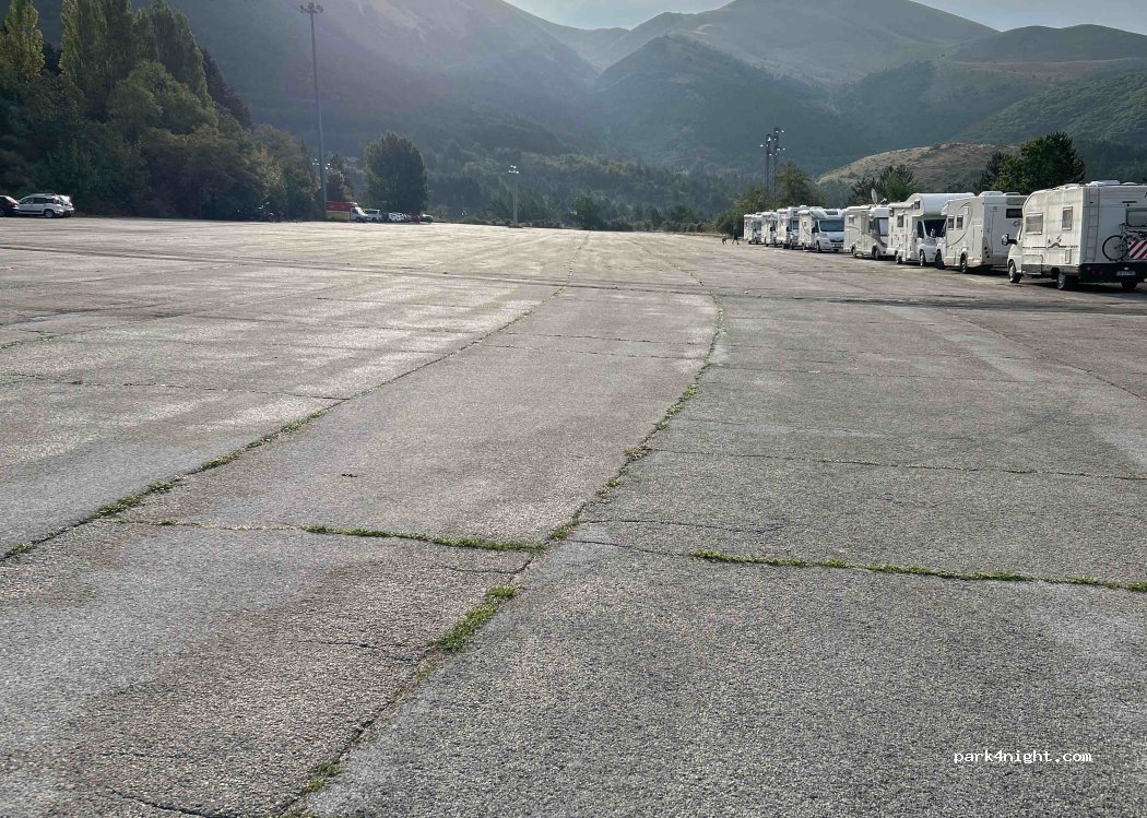 Enorme parcheggio, solo non ci dormirei. Vicino a camping , deserto forse i gestori e caro. Pochi kilometri in salita imperdibile sosta a Montecristo, infine sosta frequentata magnifica vale assolutamente il viaggio a Campo imperatore, con arrosticini e motociclisti presenti ovunque. Consigliata