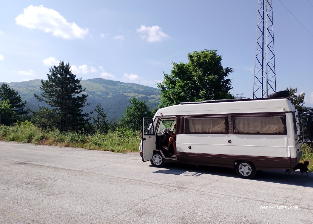 Klasse Betonplatte im Sommer zum frei parken. Wasserstelle ca 300 m oben auf der Strasse Richtung Grand Sasso links im der Einfahrt vor einem nicht mehr in Betrieb befindlichen Restaurant.