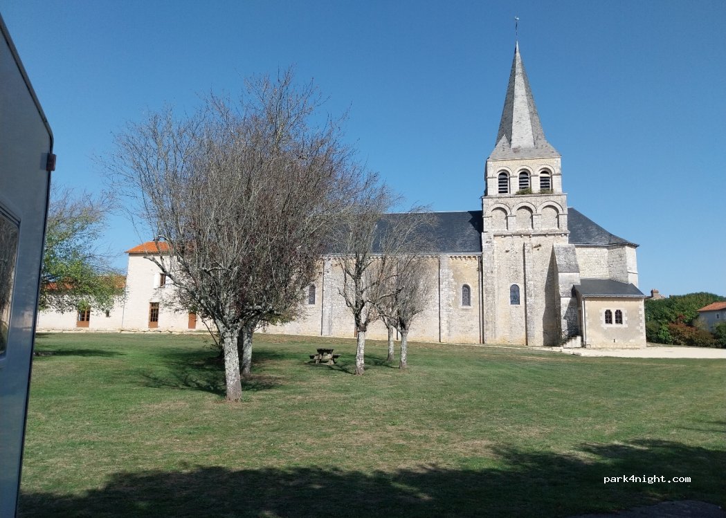 Quelques places avec quelques arbres en arrivant devant l’église mais aucune ombre à l’arrière de l’église. Par contre c’est l’endroit parfait pour une sieste après manger ! Passage assez étroit pour le parking derrière l’église.