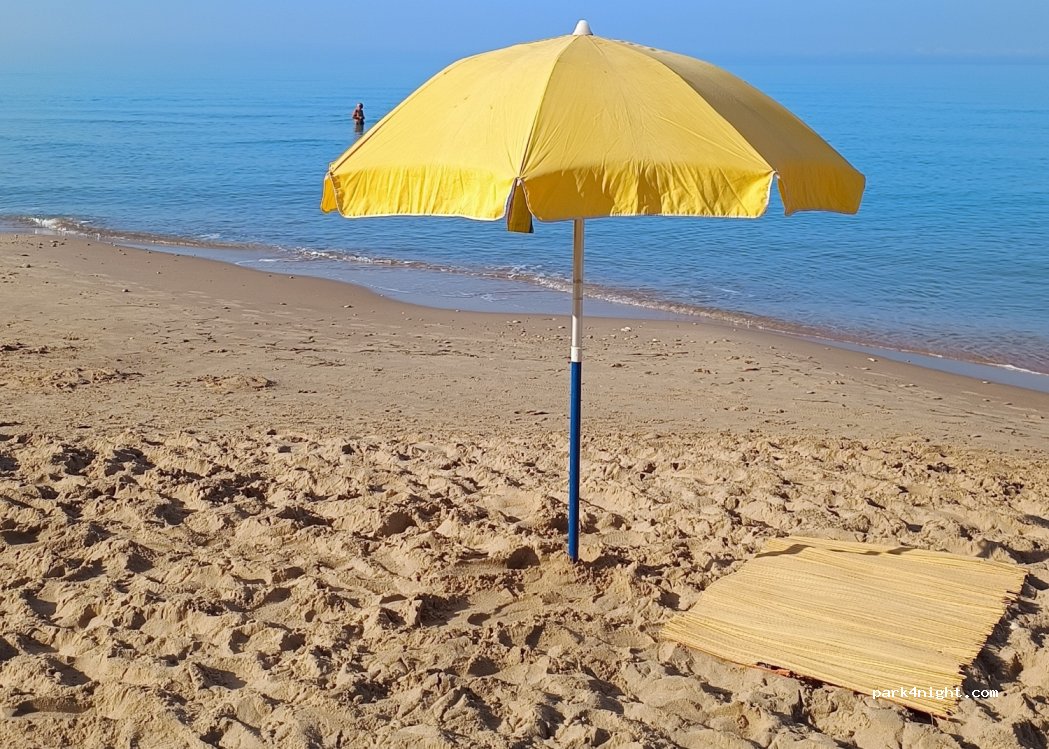 spiaggia di sabbia e scogli, frequentata per lo più da turismo locale, parcheggio comodo fronte mare, possibile pernottare, presenti cestini dei rifiuti, arrivare la mattina presto o la sera quando vanno via i bagnanti. punto ristoro sulla spiaggia in parte attrezzata.