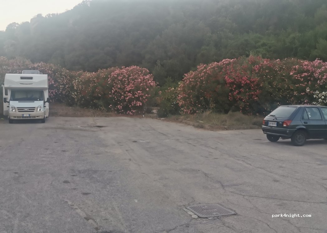 we spent the night here as Porto Cervo parkings were full, it can easily fit 3 large RVs at the far end of the parking lot, 4 or 5 but it will block the way a little bit depending on the size