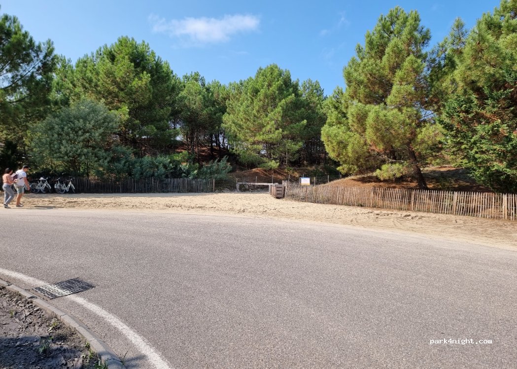 Environ 5 places en bord de route au niveau du rond-point. Accès direct à la plage (promenade de sable de 300 m). Un peu bruyant.