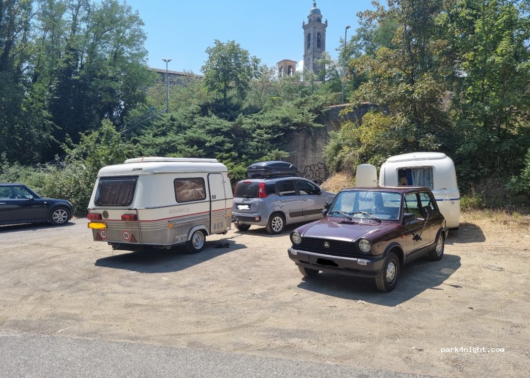piccolo parcheggio su sterrato a fianco alla strada, adatto anche a mezzi fino a 8 m. vicino al fiume vista ponte gobbo non troppo rumoroso anche se vicino alla statale. molto comodo per il centro. fontanella nei pressi. abbiamo trascorso una notte senza nessun problema