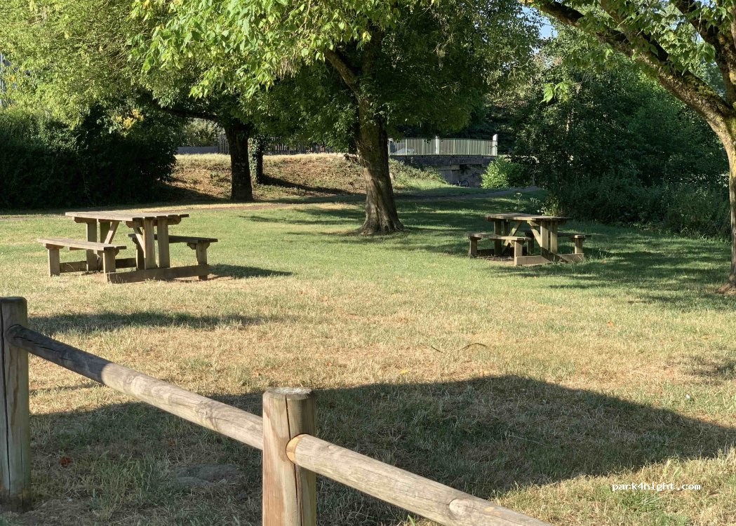 Parking bien situé proche des commerces. avec table de pique-nique et petit étang très agréable. un peu bruyant avec la route qui est juste à côté