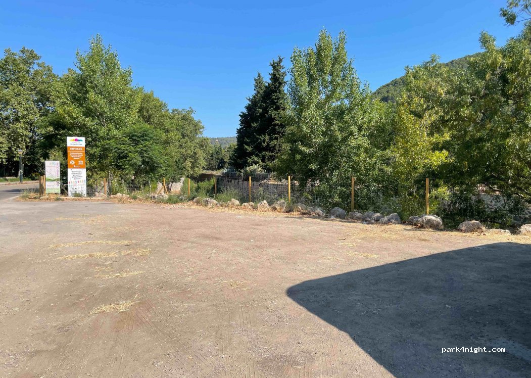 Space for about 6 AC / Campers at the entrance of the town of Esporles. Very quiet, we have spent one night in a camper. Facing the road, a little busy especially at the beginning of the day. Civil Guard passed by and didn't say anything to us.