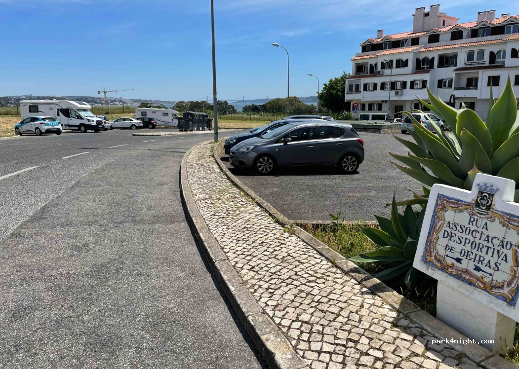Ruhiger Ort in einem Wohngebiet. Es gibt viele Parkplätze, einige davon geneigt. Verfügbar für große Fahrzeuge. Sie können sogar den Brückenblick genießen. Continente Supermarkt 5 Minuten zu Fuß und Santo Amaro Bahnhof 8 Minuten zu Fuß