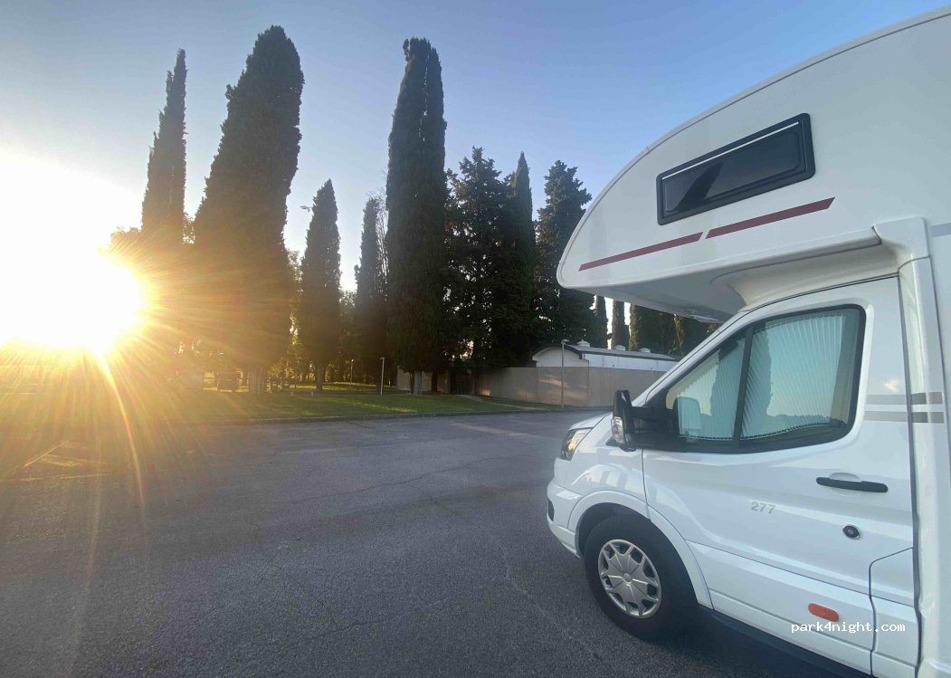 Parking next to the cemetary. Quiet and calm. Close to the tourist town Palmanova.