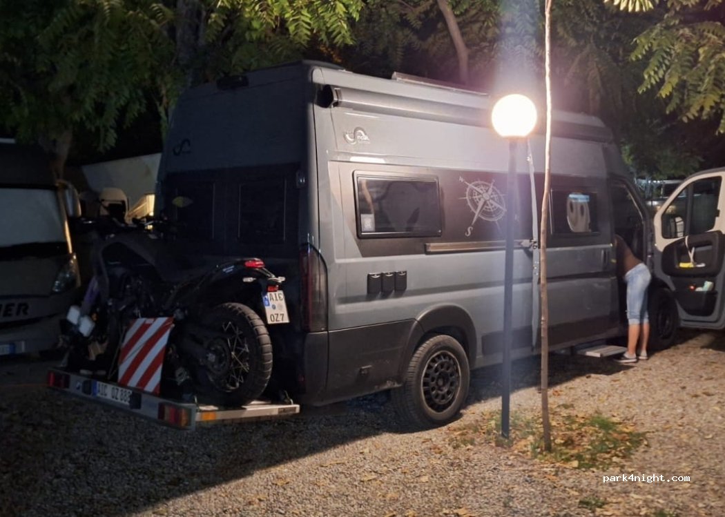 Ottima area sosta. Ben gestita con gentilezza e disponibilità. All’interno arriva un contadino con la verdura e la frutta e il pescivendolo. C’è il bar con brioche fresche ogni giorno.