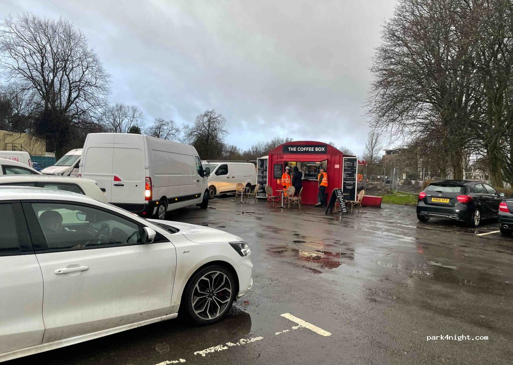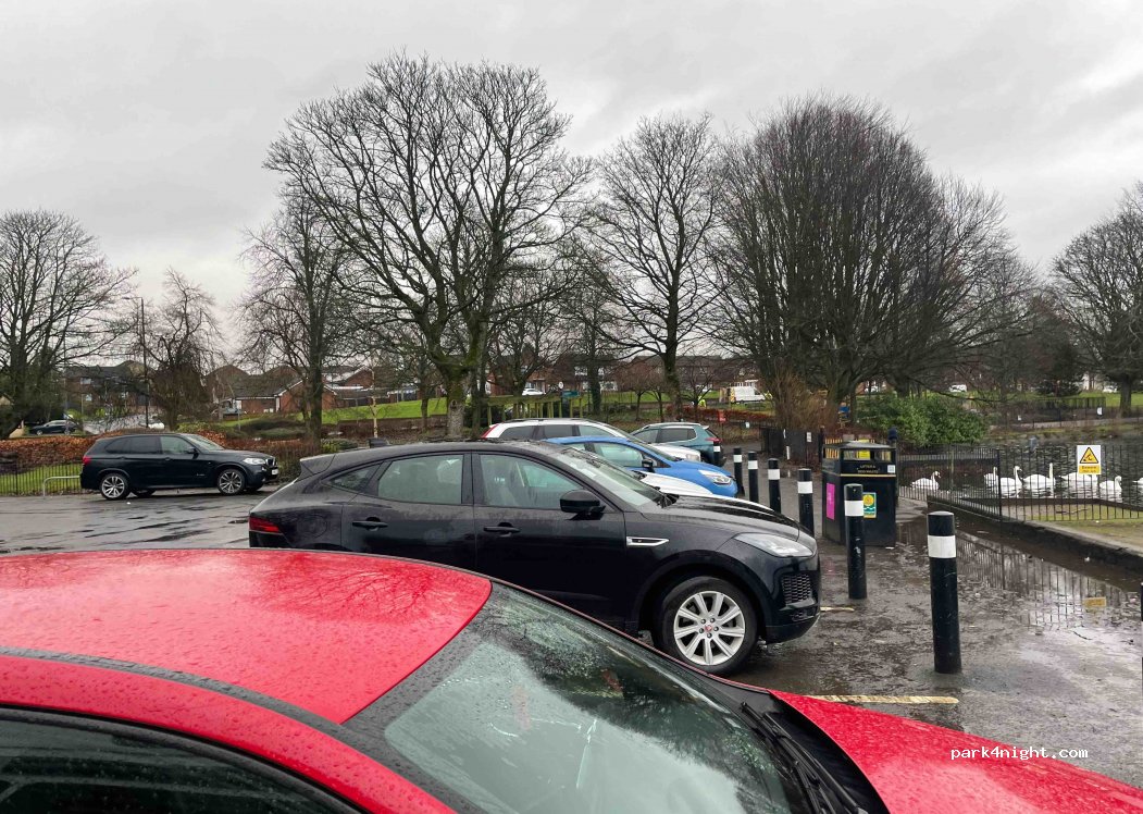 Emplacement sur un parking gratuit près d’un lac. Assez côtoyé en journée mais les places se libèrent en début de soirée. Ligne de bus directe pour le centre de Glasgow. Attention à ne pas confondre avec le parking du golf juste à côté qui lui est interdit.