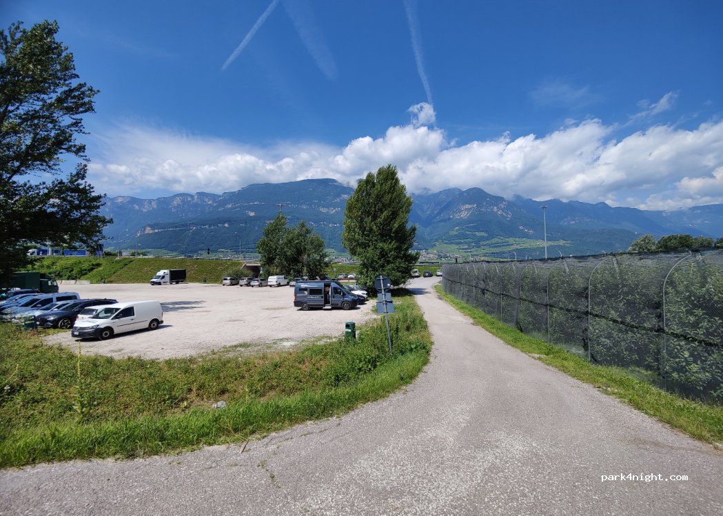 Parcheggio per camion, parcheggio gratuito, vicino all'autostrada e al fiume Adige.