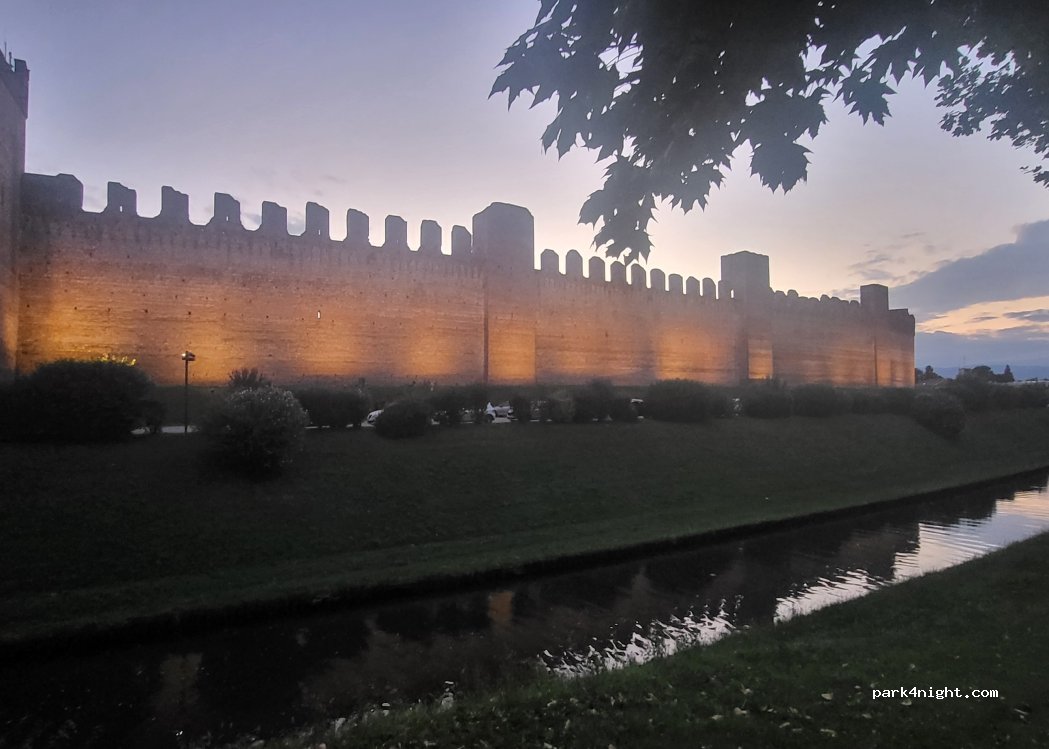 Large parking lot very quiet, free, at the foot of the citadel. It is better to stand on the wall in front of the library. No service, no toilet facilities. Access from Riva del Grappa