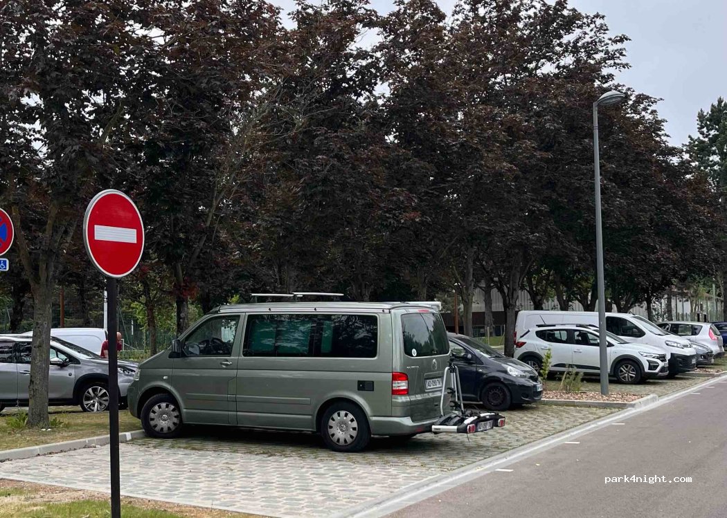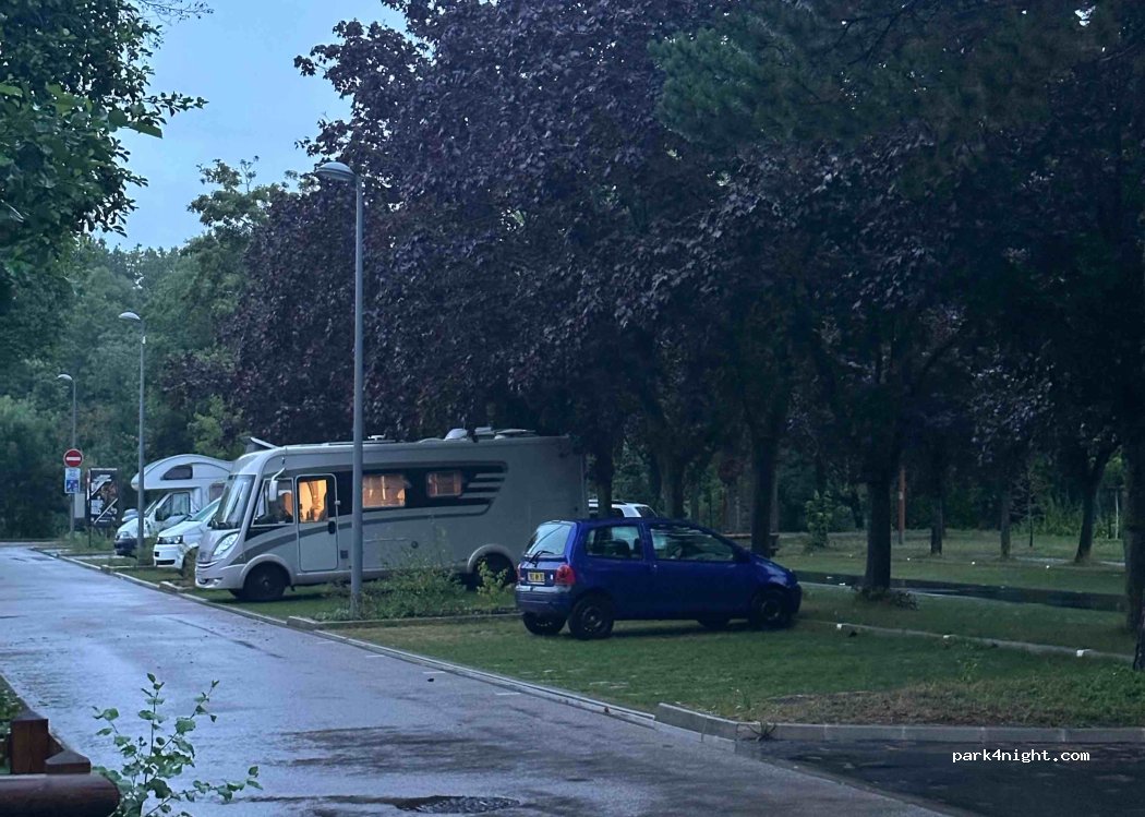 Chouette spot calme pour la nuit. Quelques passages de sportifs en début de soirée, mais on s’est sentis en sécurité. Accès par une rue à double sens très étroite : croisez les doigts pour ne croiser personne ! Notre van fait 6 m, pas plus conseillé. Bus à 10 min à pied vers le RER A, environ 1h jusqu’au centre de Paris.