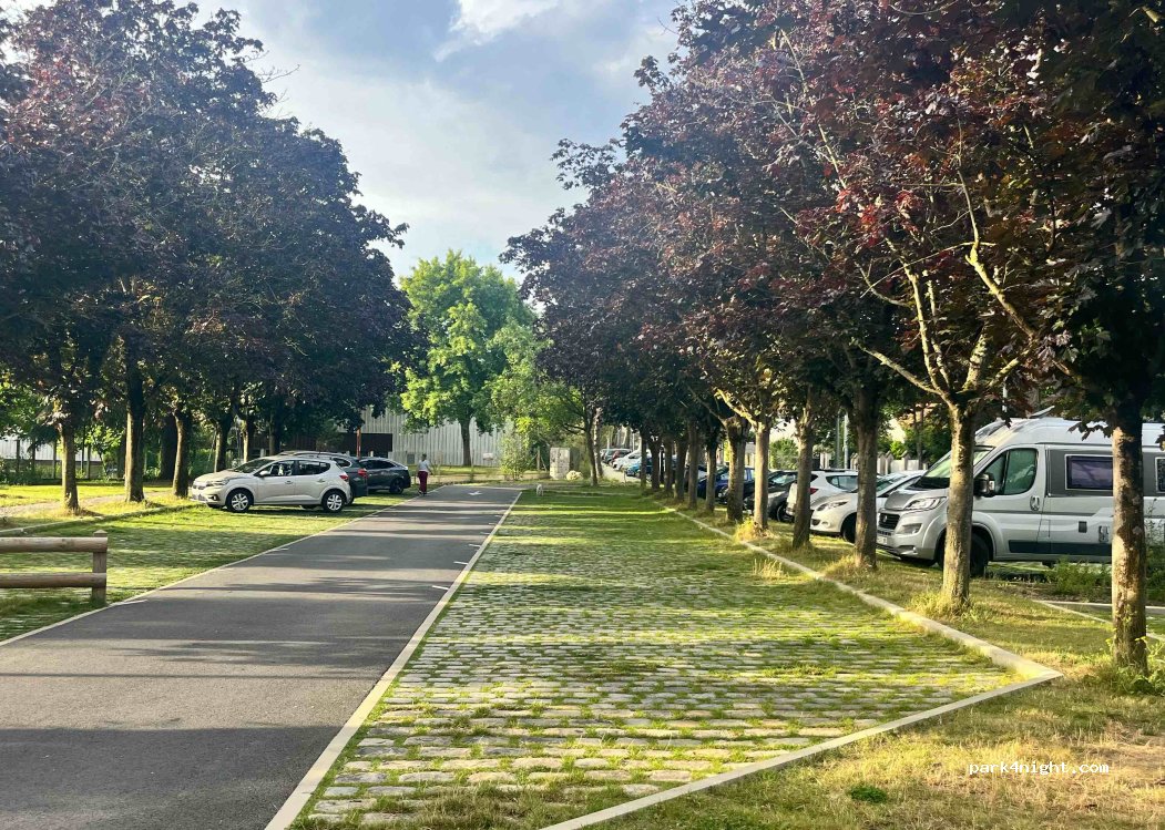 Endroit plat dans un environnement offrant un bon rapport entre calme et position en pleine ville, à moins de 10 minutes des autoroutes. Peu d'emplacement, à exclure si on a un véhicule haut et long. Nous avons eu du bruit jusqu'à minuit mais c'était la fin de l'été et des enfants s'amusaient, donc c'était bien normal !
