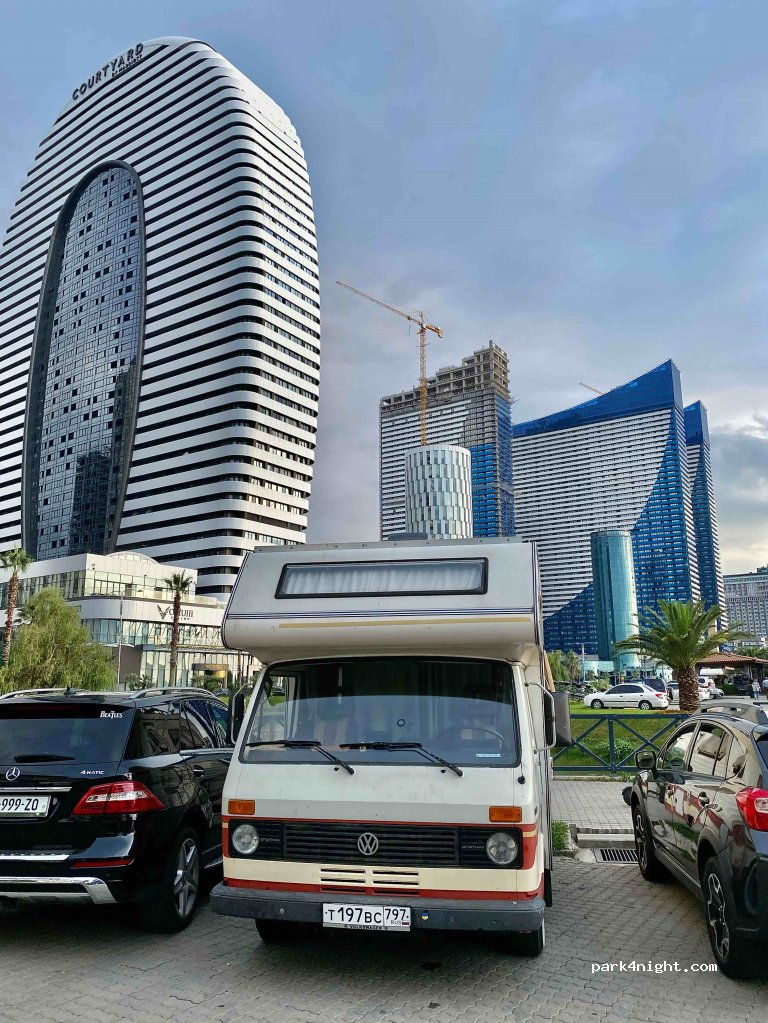 Guter Parkplatz um Batumi zu besuchen. Im Sommer ziemlich laut und viel los auch bis in die Nacht.