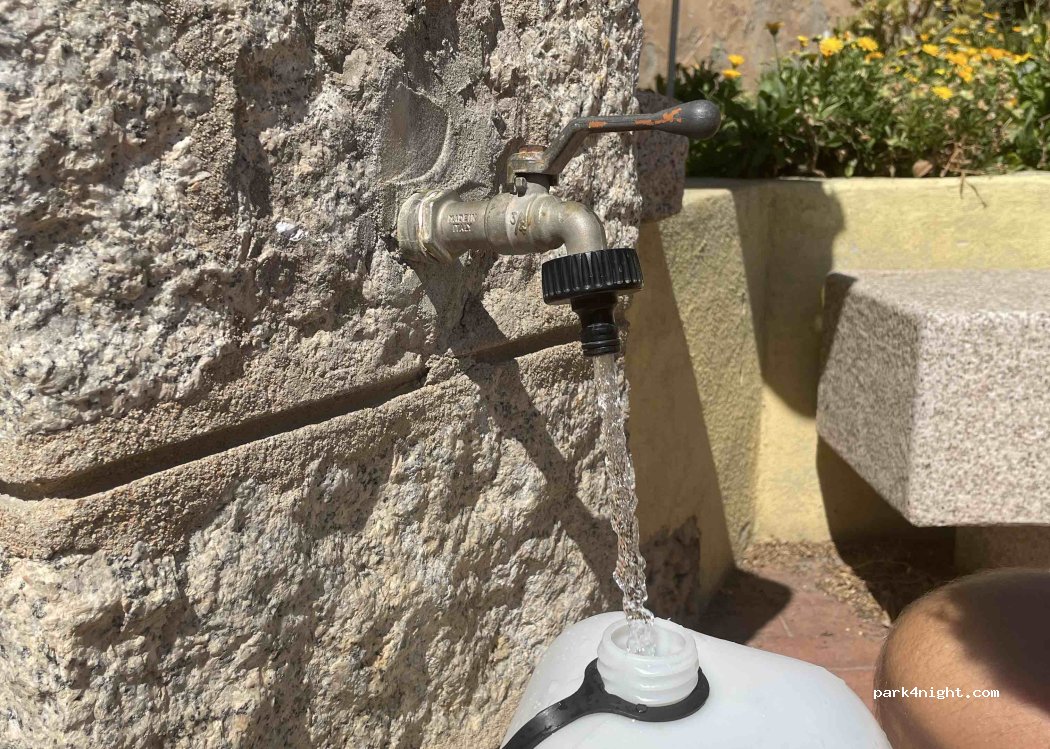 Guter Wasserdruck und gewinde am Wasserhahn. Parken ist schwierig, wir hatten Glück und konnten direkt vor dem Wasserhahn parken und auffüllen