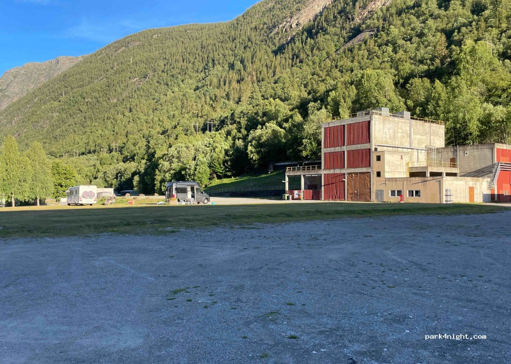 Rustik og industrielt men super hyggeligt. En enkelt vandpost så fyld på inden parkering. Der kan være behov for langt kabel til el. Men smuk udsigt til fjeldene på begge sider og gå afstand til butikker og centrum. Selvbetjening med betalingen, kontant i kuvert, vipps eller IBAN.