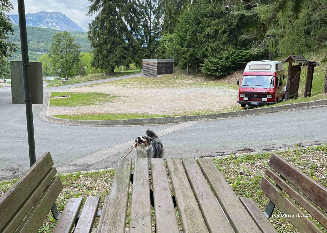 Parking à Masi di Vigo, à quelques pas de la pizzeria et du restaurant La Genzianella. La majeure partie du parking est légèrement en pente, quelques places sont de niveau, fontaine d'eau potable également pour le chargement de l'eau, jeux pour enfants, 4 tables avec bancs, 4 autres bancs avec vue dans des petits coins bien entretenus du parc. Ici, le départ de courtes excursions vers Malga Plan et dans les bois de Vigo Cavedine en suivant l'itinéraire « Masetti, châtaignes et légendes » qui part d'ici. Nous sommes en lisière de forêt, belle vue, en partie ombragée. Il n'y a qu'un seul panneau de stationnement, aucun autre panneau. Calme pour manger, super endroit !