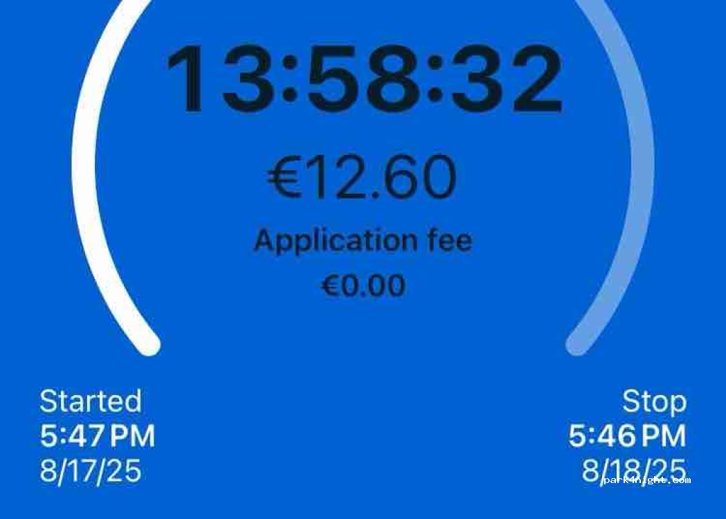 Perfect place inside the old town and the price is unbeatable! Very expensive short term parking, but long term is great. App starts charging €2 for 30 min and after 4 hours when it reaches €12.60 the charge stops until it reaches 24 hours. After that you need to restart the app again. Fairly quiet night, being right in the city center.