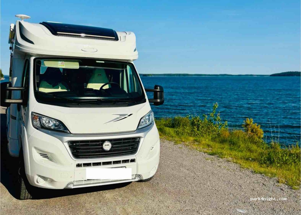 Sweet spot next to the inlet Bråviken. Close to the road, and just a gravel spot, but great views over the water, and free! Slightly sloped and a bit bumpy.