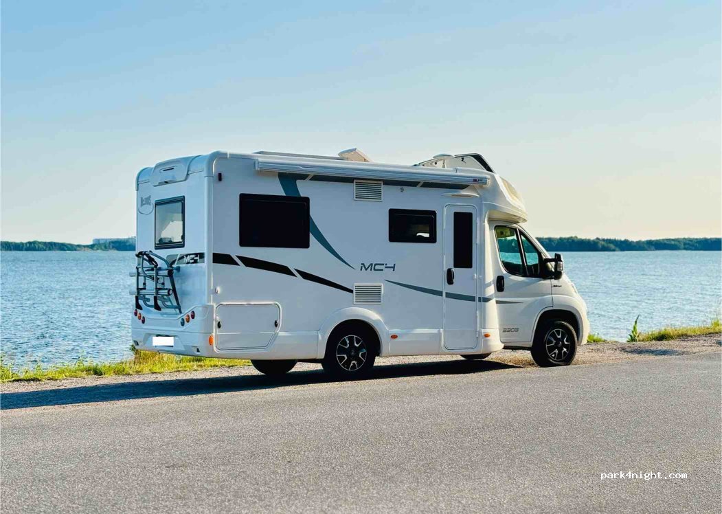 Beau parking au bord du lac. Route très fréquentée la nuit le week-end. Mais une belle vue pour se réveiller. Les habitants vous klaxonnent lorsqu'ils passent devant.
