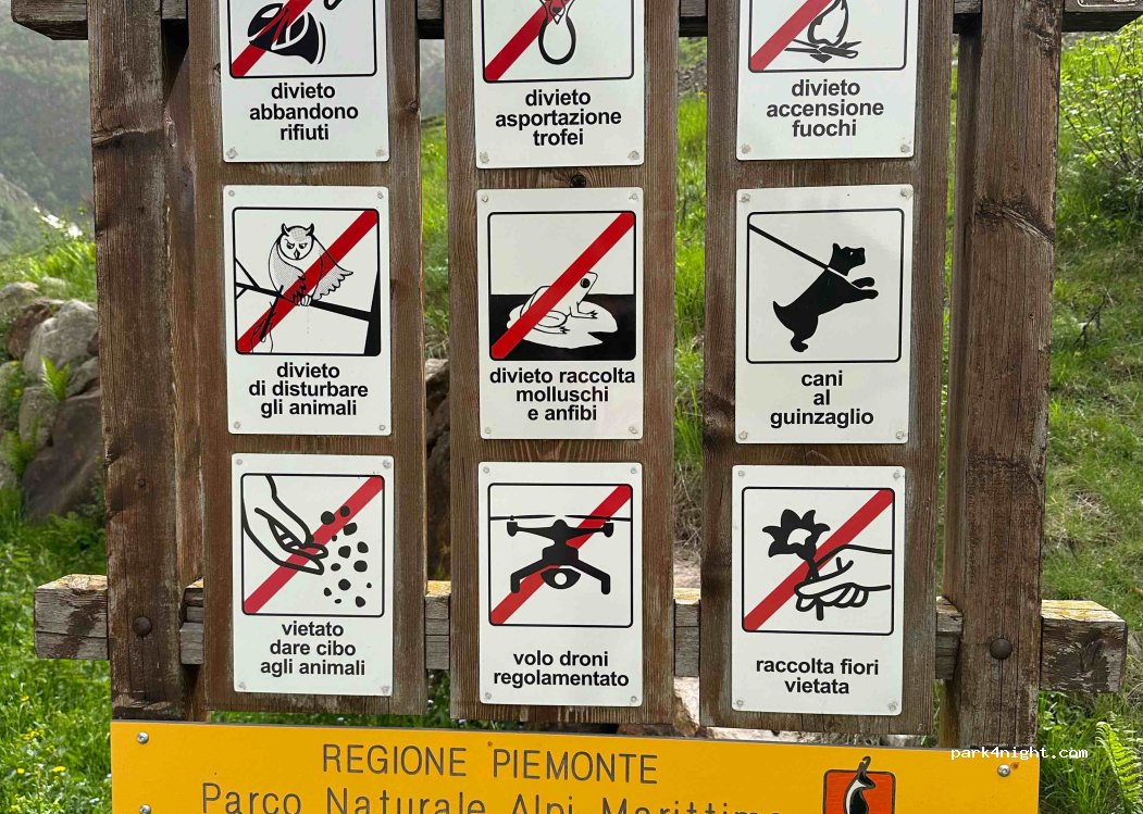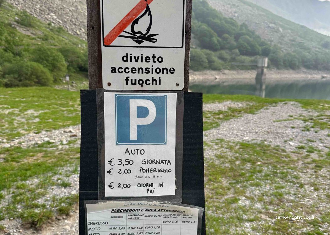 Camping and camper parking, about 15 places. For a fee of about 9 euros per camper per night. No service. It is located on the dam of the lake of the ruins of Entraque. Great place for trout fishing and walking. You can go at night and pay in the morning at the kiosk.
