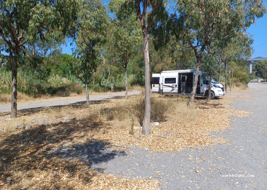 Devant le terrain de tennis, les places sont très courts (~5m) mais places en créneau 100m plus loin. Nous nous sommes garés devant la centrale électrique. Pratique pour visiter Cervo la journée (15min de marche) vu les restrictions de camping car partout