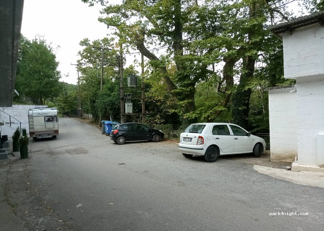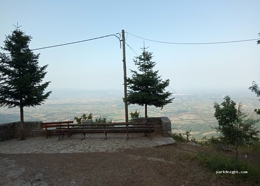 Paysage incroyable avec une excellente vue sur la plaine, avec Trikala et Karditsa à vos pieds. Aussi beau et étonnant que soit le paysage, la montée et la descente sont tout aussi difficiles. Avec des pentes qui atteignent 12%. Quand la route est mouillée, c'est, je dirais, dangereux. Nous sommes restés dans le stade, car il y avait peu de sièges plats sur la place. Pour la nourriture et le café dans le village.