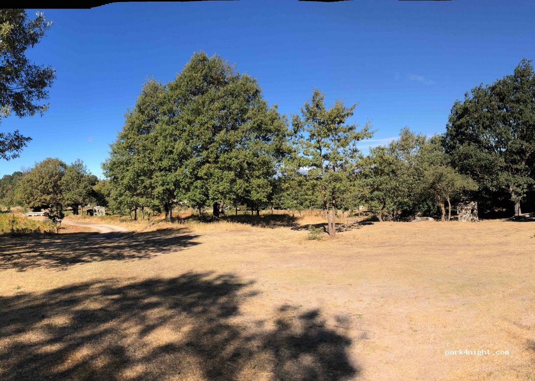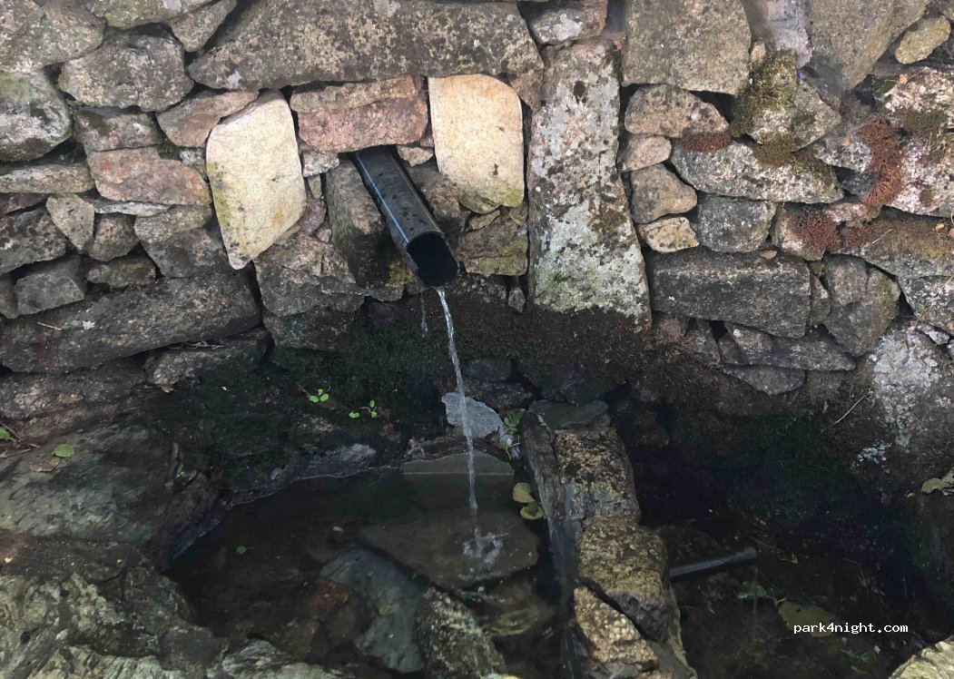 Am Ausgang des Parkplatzes befindet sich auf der linken Seite ein Tor (das geöffnet war). Dahinter führt ein befahrbarer Weg zu einem großen Rastplatz mit Tisch und Steingrill. Wir gingen weiter auf der Strecke, um Zugang zur Luft unter uns zu erhalten, im Schatten und mit einem Springbrunnen. Seien Sie vorsichtig beim Abstieg, der Weg hat einige Spurrillen, die mit einem 4x4, aber mutigen Van befahrbar sind.