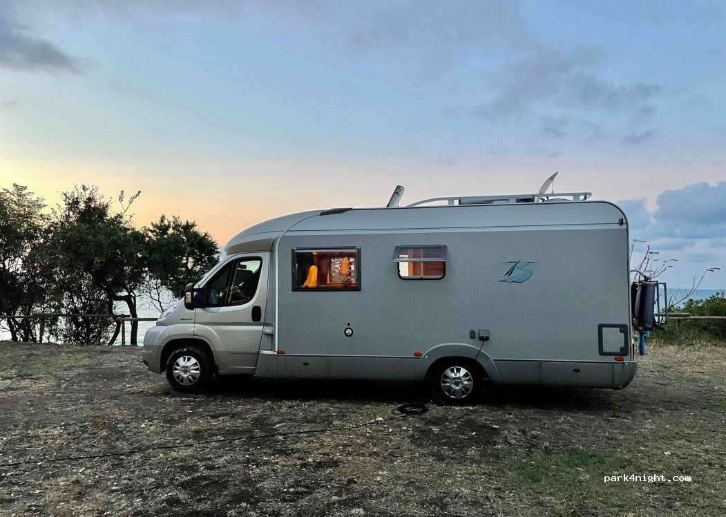 Area sosta con vista stupenda sul mare e accesso diretto alla spiaggia. Bagni piccoli, docce a gettoni che forse andrebbero rifatte. È affianco alla strada e per questo in po' rumorosa, ma il rumore del mare e il panorama fa dimenticare il resto. A luglio 20€ a notte