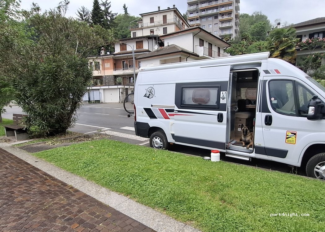 Free mobile home parking space along the road on the shore of Lago d'Orta in Omegna. Pay attention to the information sign when driving through town. No parking on Thursdays due to market day. Ideally suited for an overnight stay. Thanks to the city of Omegna for this opportunity.