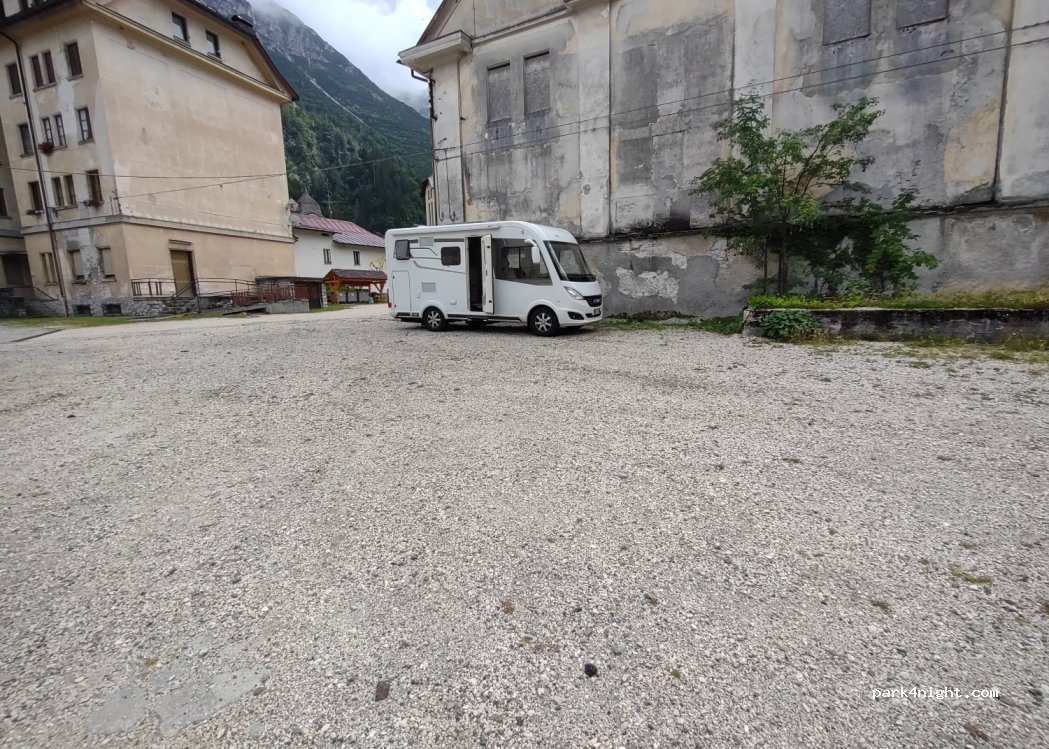 Ampio parcheggio sterrato gratuito, possibilità di sosta giorno e notte.