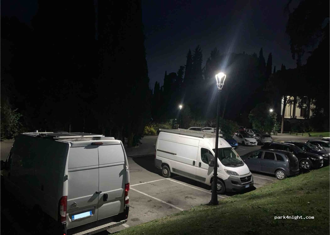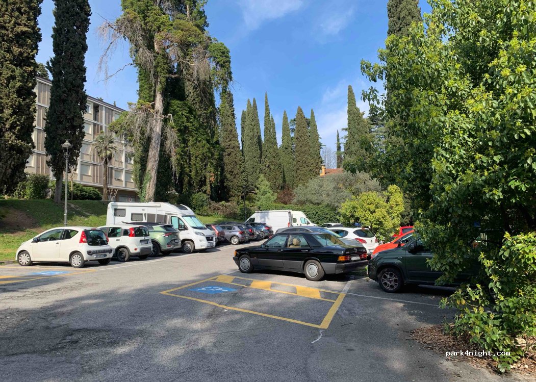 Normale parcheggio vicino al Vittoriale degli Italiani. Ingresso un po stretto, a doppio senso di marcia, ma si trattano di appena 150m. Parcheggio abbastanza in piano con una capacità di circa 35 macchine. Nel mio caso ho pernottato una notte con un Citroen Jumper L4H3, tutto senza problemi, zona tranquilla.