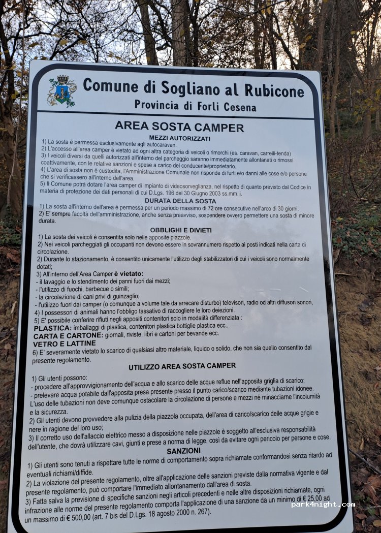 Area parcheggio "le greppe" comodo per visitare Sogliano al Rubicone, pianeggiante con fontanella acqua e casetta dell'acqua. Tranquillo e silenzioso di notte.