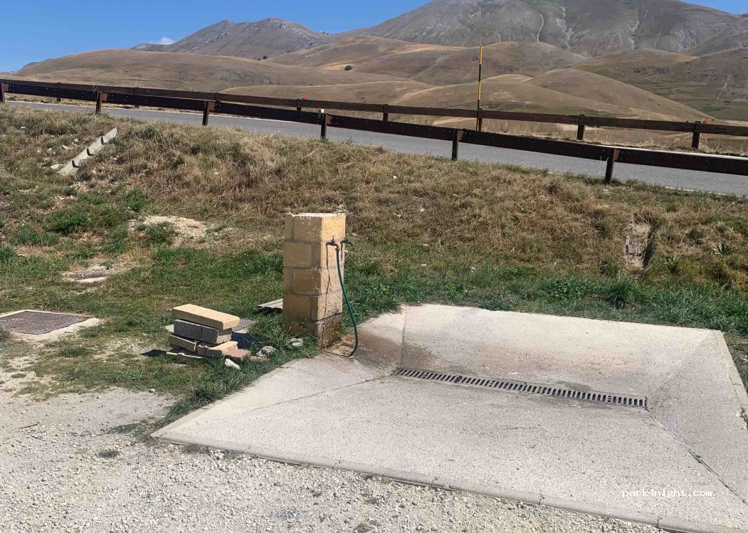 Area sosta favolosa in uno dei posti più belli di sempre. Vista impagabile sul "Tibet italiano", pace assicurata. Carico e scarico, pozzetto per svuotare il wc chimico. Ottimi ristoranti sopra con bagno pubblico. Torneremo sicuramente. Da lì si può visitare Castelluccio, iniziare trekking o partire in bici per esplorare la piana.